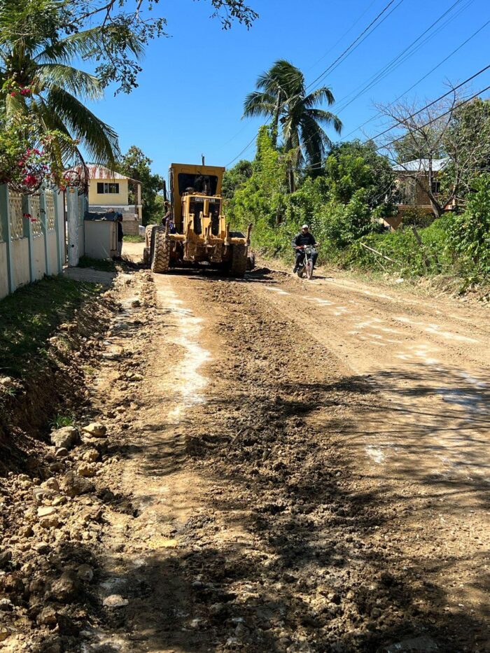El Alcalde Freddy Cruz y la Junta Distrital de Cabarete llegan con los equipos pesados a la comunidad Playa Laguna. Les toca a sus comunitarios la reparación de sus caminos vecinales