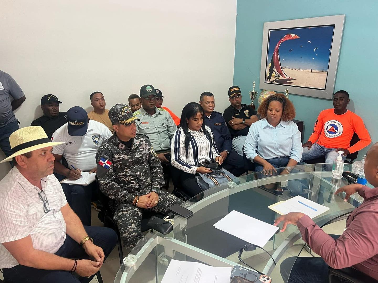 El Comité de Emergencia sostuvo una importante reunión para establecer la pauta de trabajo que se desarrollará durante esta Semana Santa. El encuentro estuvo encabezado por el alcalde Freddy Cruz, junto a la vicealcaldesa Yaneli Herrera y la presidenta de la Sala Capitular, Yesenia Josefina Aragones Sims. También participaron el vicepresidente Robinson Abreu Almonte, el coronel de los bomberos Danny Zarzuela, el coronel Medina, jefe de la Policía Nacional en Cabarete, y el sargento Delvi Alexander Martínez (Peña), en representación de DIGESETT.